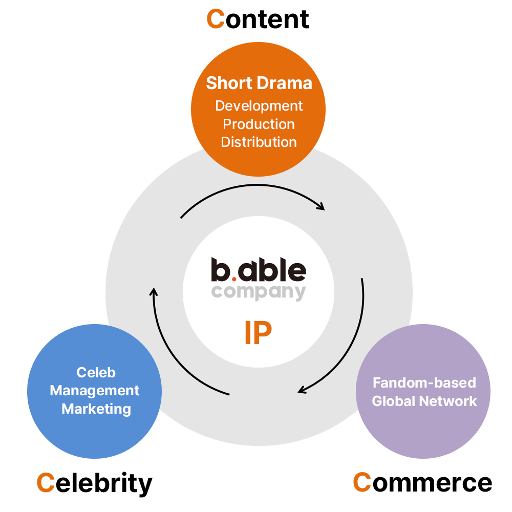 숏폼드라마, 아티스트 매니지먼트, 셀럽 커머스를 통해 글로벌 IP 비즈니스 생태계를 만들어갑니다.