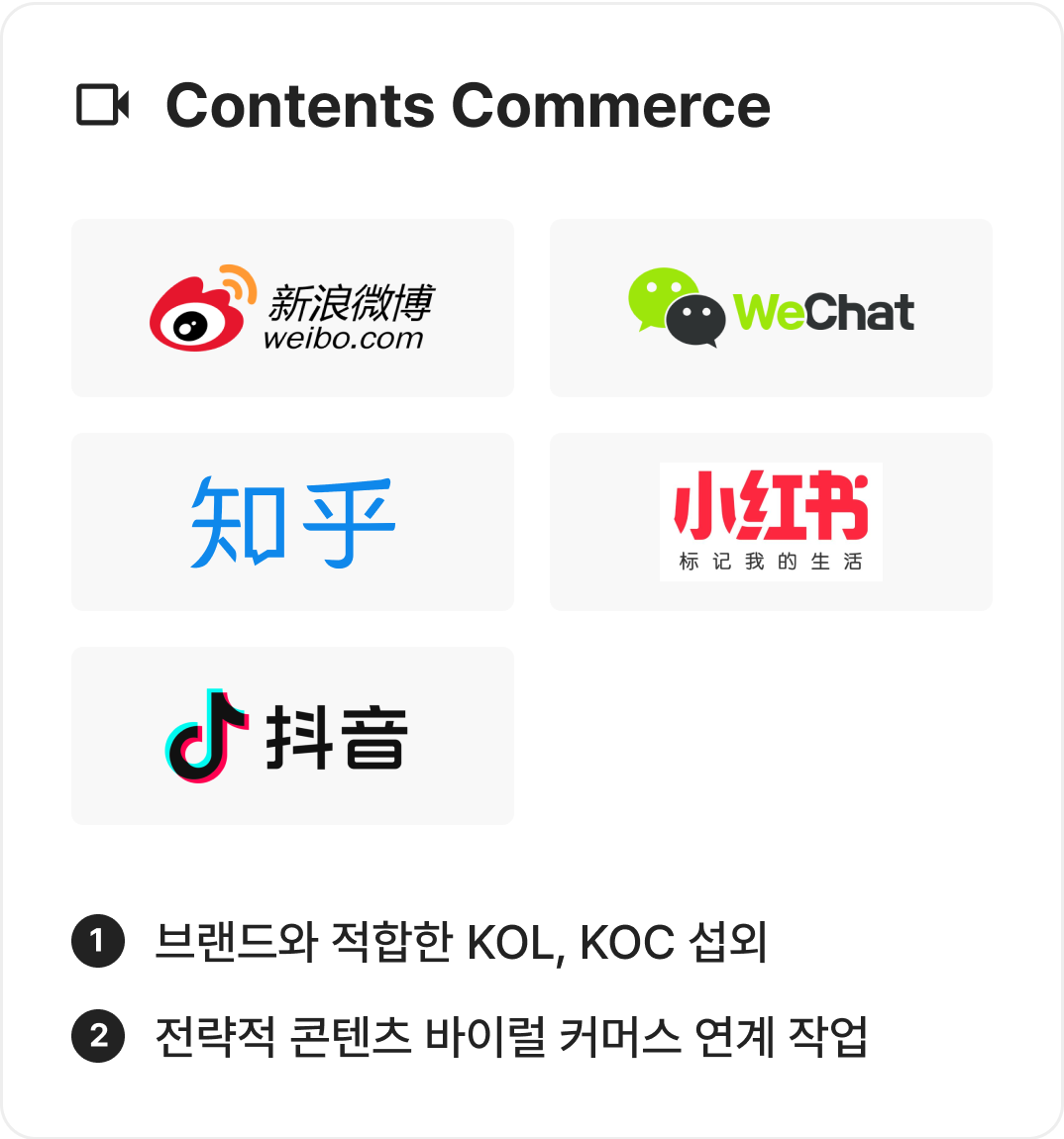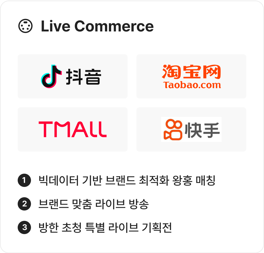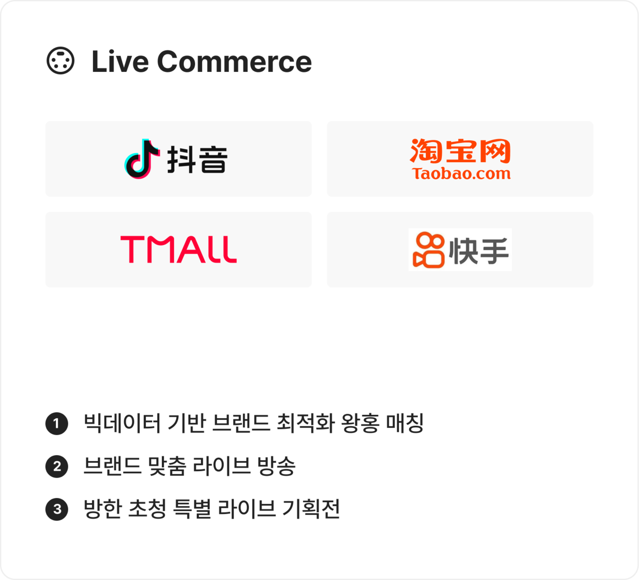 • 국내 엔터 / 매니지먼트 신인 배우 / 가수 / 아이돌 연계 중국 IP 계정 육성