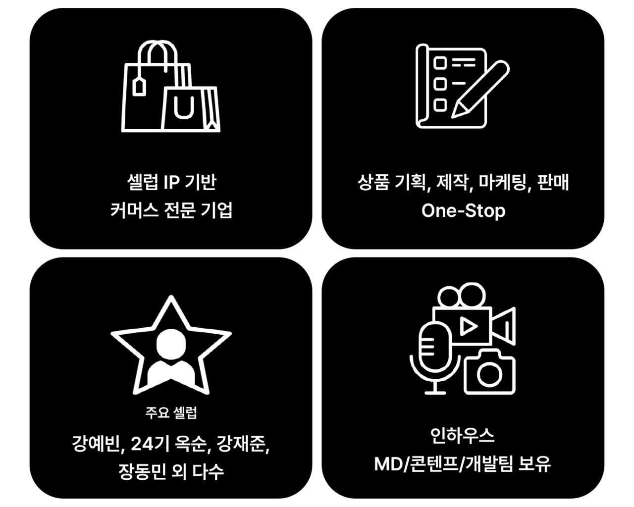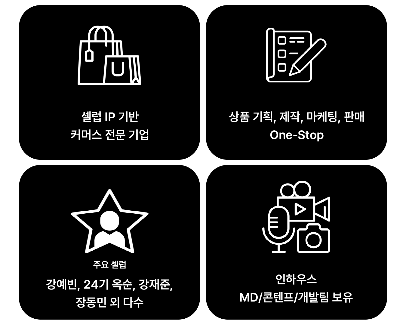 아티스트 IP를 기반으로 콘텐츠 생산 및 브랜딩을 통해 새로운 글로벌 비즈니스를 만들어갑니다.
